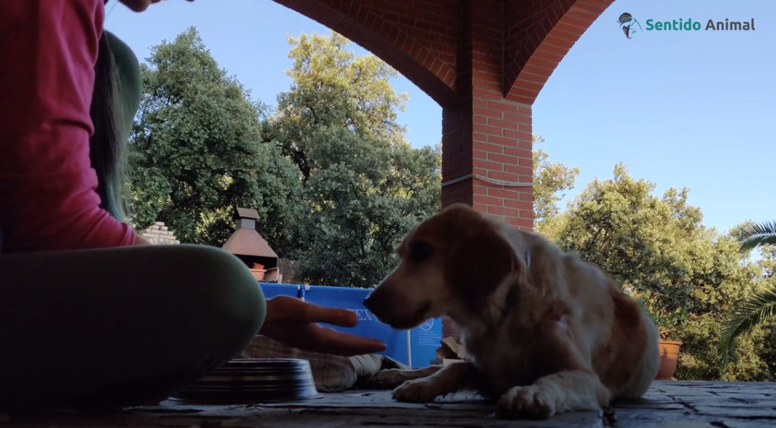 Miriam SainzMotivando a una perra para que coma